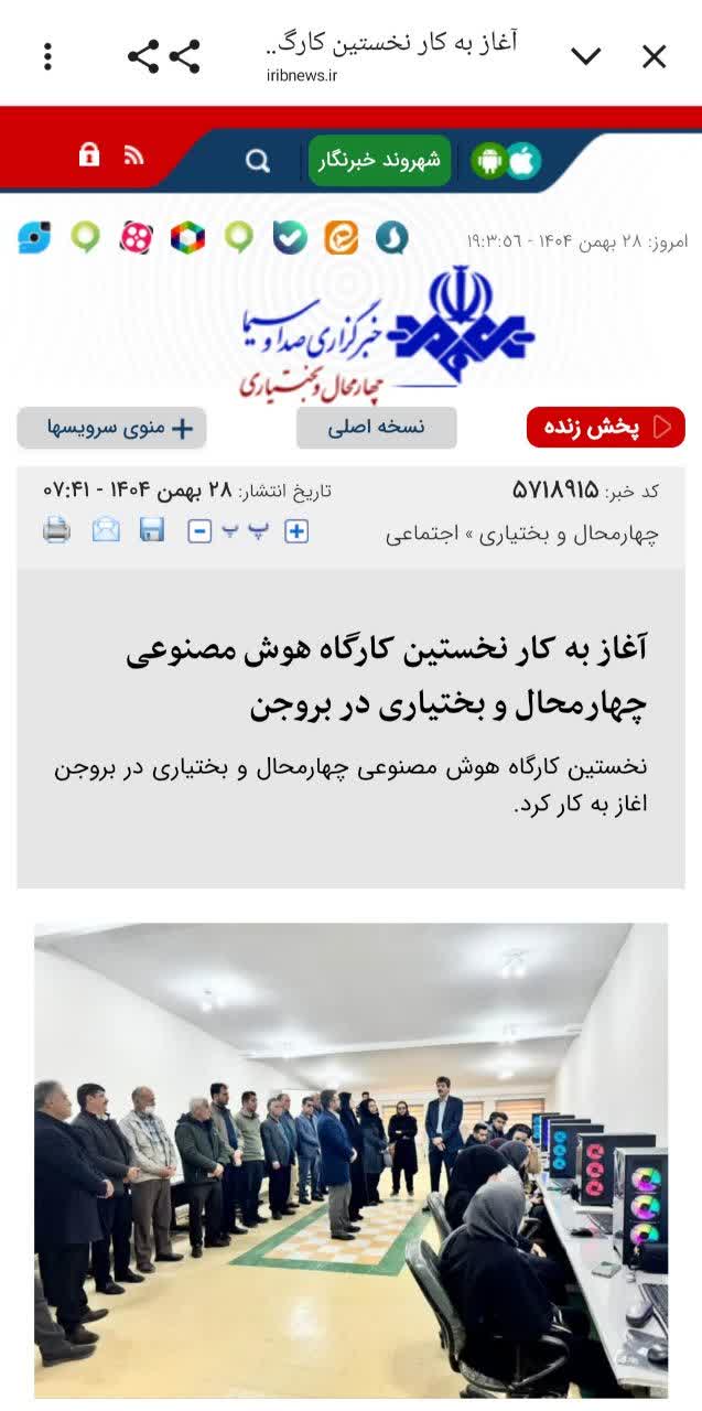 🔹نخستين کارگاه هوش مصنوعي چهارمحال و بختياري در بروجن اغاز به کار کرد.